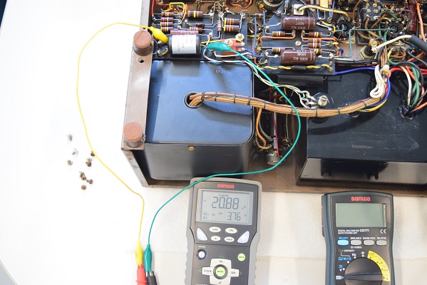 バイアス回路の電解ブロックコンデンサーの検査です。こちらは問題ありません。