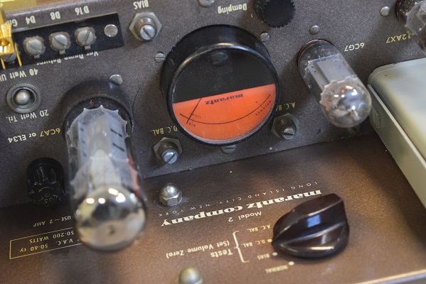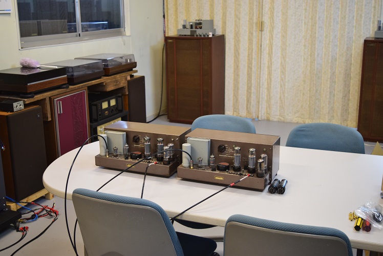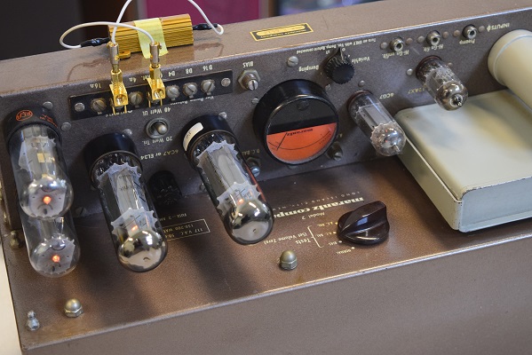 4年前に当工房から購入頂きました Marantz model 2 赤メーターの初期型です。 今回、ボンと言う音が出て出力管が赤くなったので修理を依頼されました。 購入後一度もバイアス調整をされていないそうです。