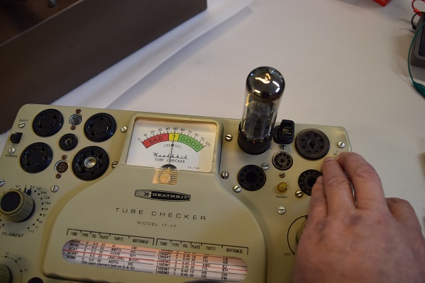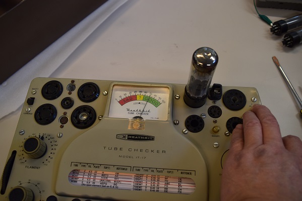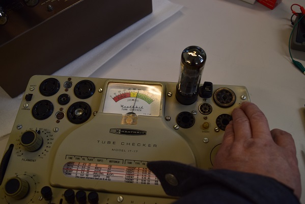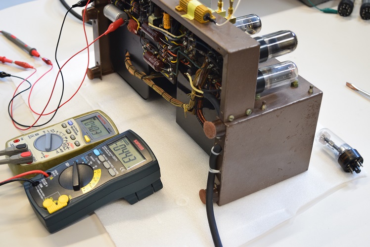 音出し風景です。異常があった左のアンプの出力管は、こちらのストック品のelectro-harmonixの新品です。正常な右のアンプはTelefunken EL34です。