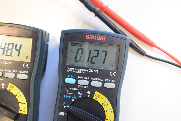 ツマミを回して電圧をチェックすると正規の電圧が掛かっているにも係わらずメーターは振れません。