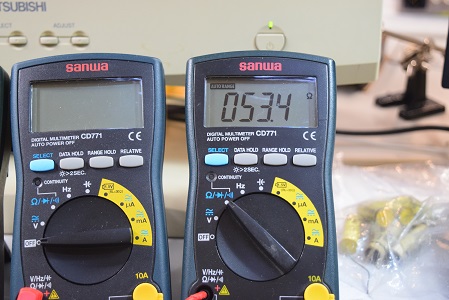メーターの巻き線抵抗です。かなり小さく出ています。この為やはりメーターのコイルの巻きなおしが必要かもしれません。