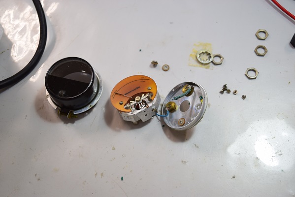 ★メーターが振れない方の中の基板を外し、メーター端子の導通を測りました。
