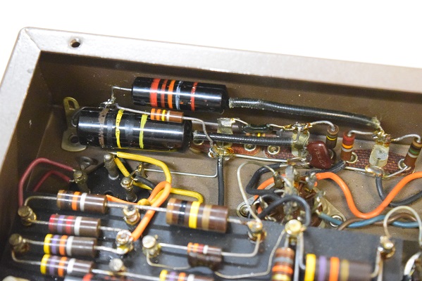 内部はそれなりにメンテされています。電源トランスは巻き換えられているようで、ラッキーです。#2のトランス類はどれも限界を過ぎているので、まだ巻き替えがされていない固体は遠からず巻き替えが必要になり、高額出費が待ち受けています。また、巻き換えをせずオリジナル状態では内部の巻線がボロボロで音も悪くなっています。