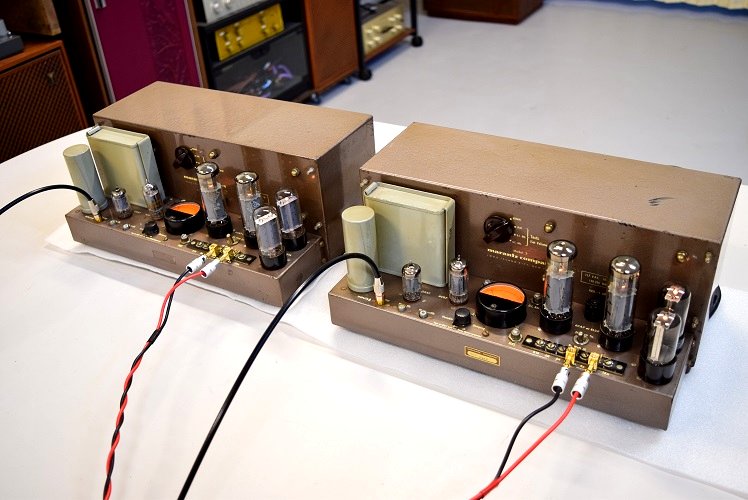 Marantz model 2 初期型 赤メーターの2台です。 最近ヤフオクで落札され、直送でこちらに送って来られました。外観はかなり汚れが酷く余りメンテされていないようです。1台はシリアル番号のラベルが剥がれていて何番かわかりません。