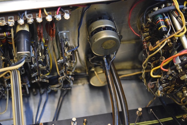 内部も完全なオリジナル状態です。2桁台特有の配線でフラットケーブルの空中線が見えます。
