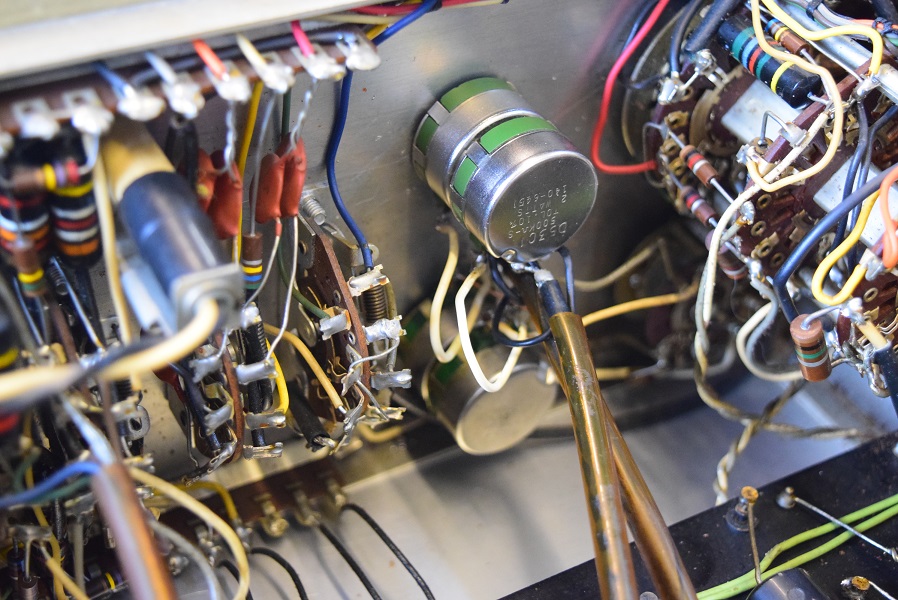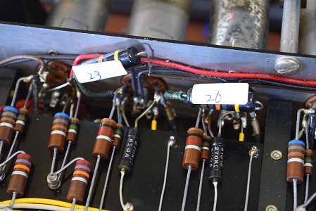 この画像の奥に少し見えますが、カソードバイパスコンデンサーが何故か2本束になっています。前回の他でのレストアの時、正規品が無かったのでしょうか?