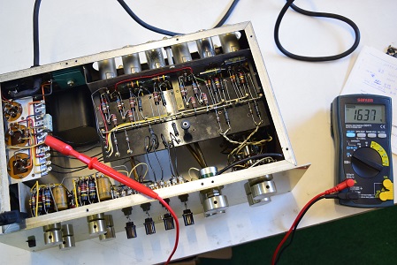 こちらはヒータ電圧です。16.37Vを示しています。正規電圧は19.8Vなのでこれもかなり下がっています。