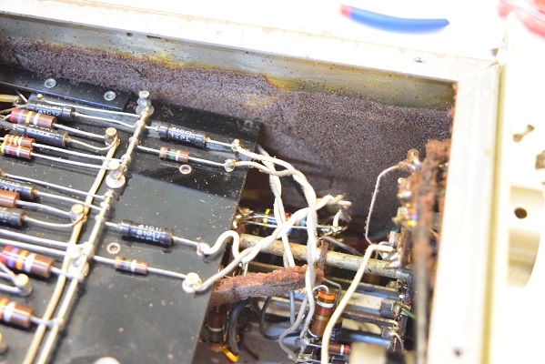 フォノイコのカソードバイパスコン1段目です。リークして不良です。