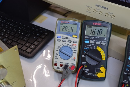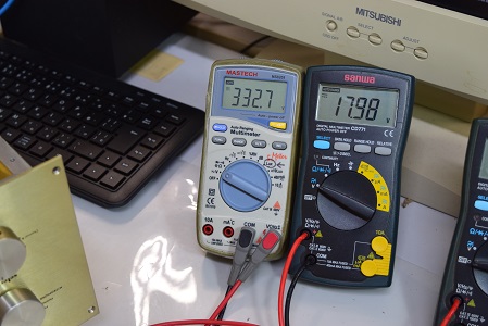 右テスターはヒーター電圧です。 18.1Vを示し良い値です。