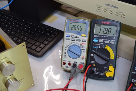 こちらの白テスターは同じく交換した低圧セレン直後の電圧です。 26.65Vで良い値です。