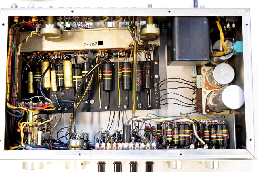貴重なMarantz7 S/N.10700番台です。 以前ボリュームに大きなガリが発生し、購入先の有名ヴィンテージショップに修理を依頼したら酷い状態で帰ってきたので当工房に再修理レストアを依頼されました。