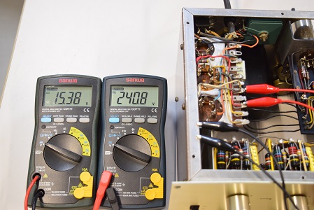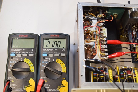 電源の電解ブロックコンデンサーは3本ともオリジナル仕様の新品に交換しました。高圧セレンと低圧セレンはブロックコンデンサーや電源回路を全て新しくするとまあまあの値に復帰したので交換せずに残しました。