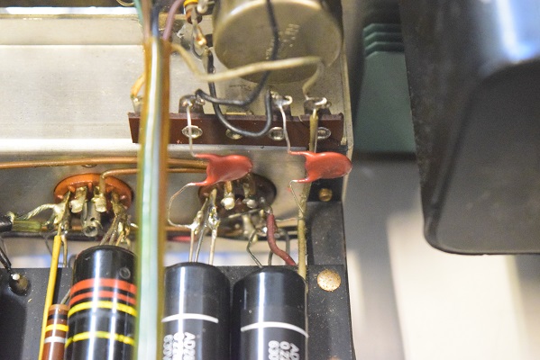 青い高圧セレンの下に配置しているφ25ブロックコンデンサーがφ35に変更されています。どうなったのでしょう。通常Marantz7用のφ25は極めて特殊なコンデンサーなので代品は皆無です。