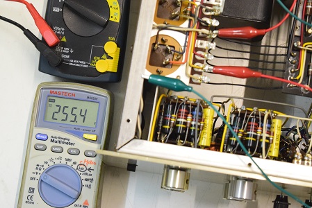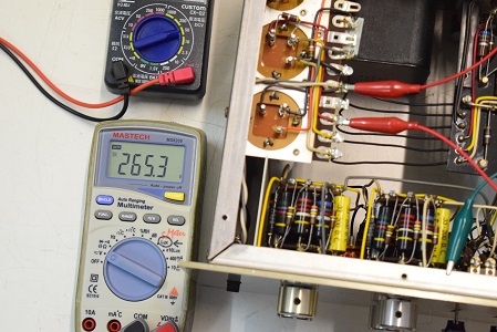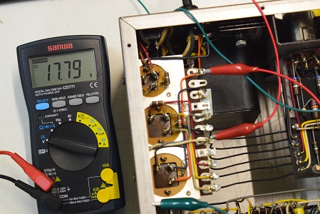 電源は値が良かった高圧セレンはそのまま残し、電解ブロックコンデンサーを3本ともオリジナル仕様の新品に交換しました。