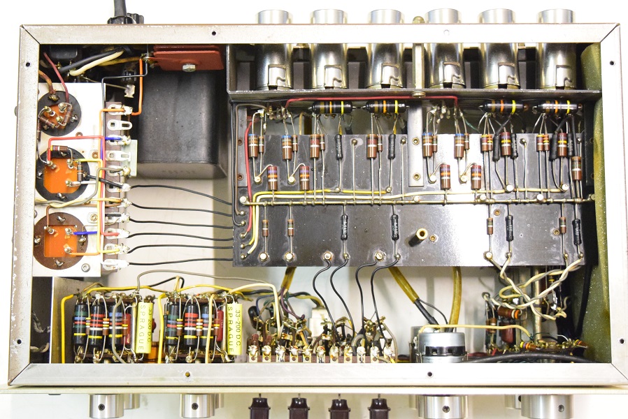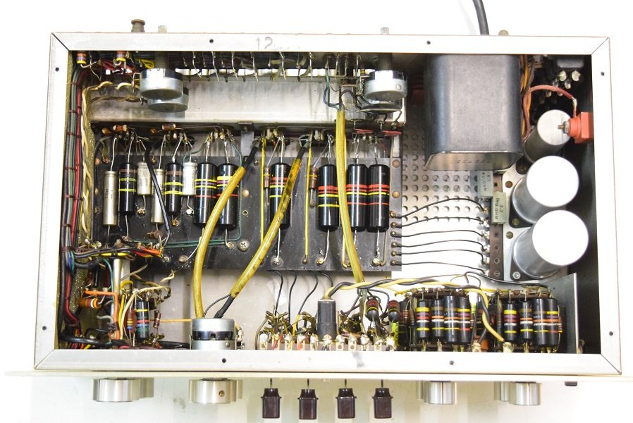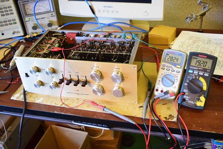 今年の1月に当工房から購入頂いたオールバンブルビー化レストア済のMarantz7です。今回フォノイコ左の音が出なくなったので修理を依頼されました。