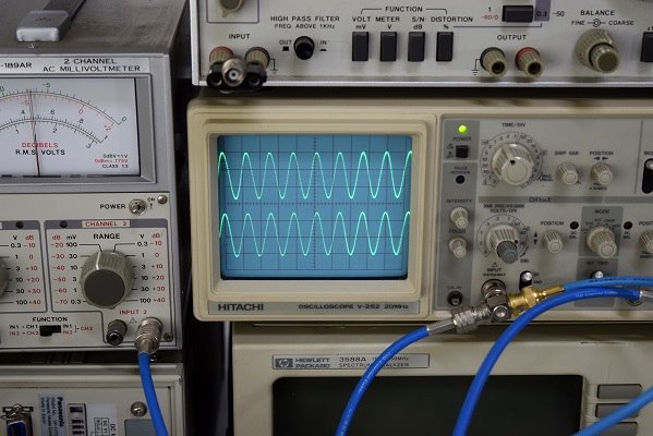 真空管も換えてみて波形を観察します。かなり細かいノイズが両チャンネルで乗っています。