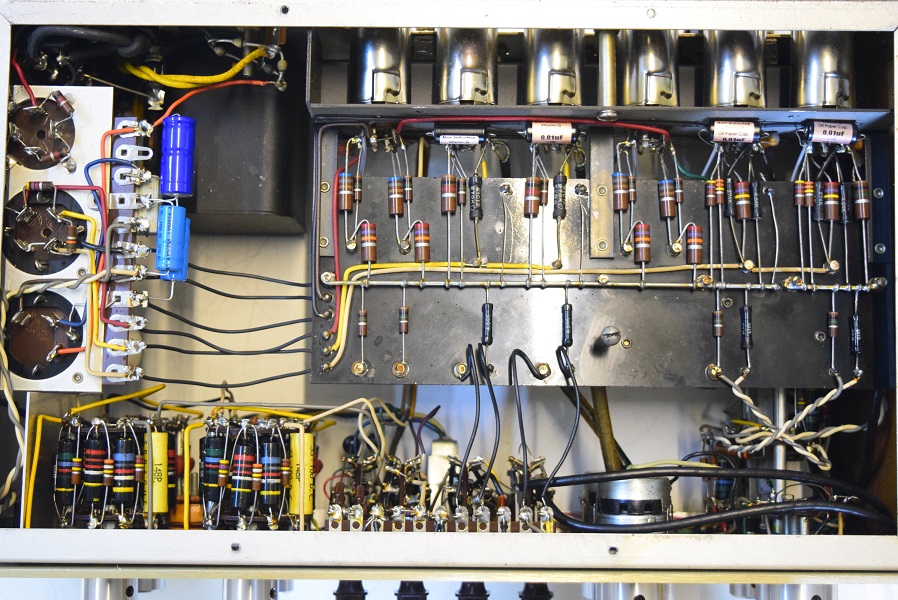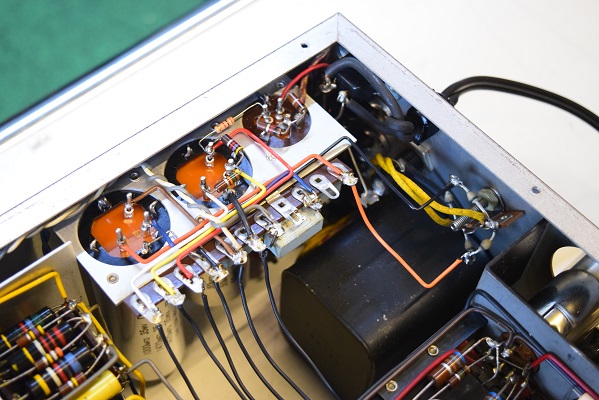 内部上面です。全ての主要カップリングコンデンサーは購入先のショップで新品の代品に交換されています。またフォノイコのカソードバイパスコンも新品交換されています。