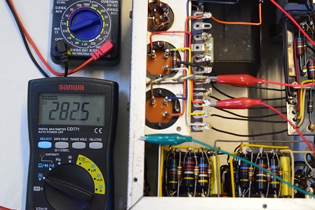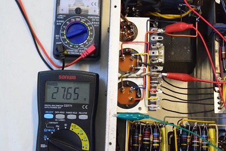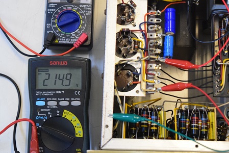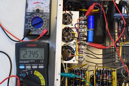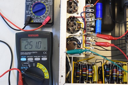 高圧の電圧は全てかなり落ちていました。こちらでは常にコンセントの電圧は117Vで検査します。この状態でこれだけ電圧が落ちていますが、これを100Vで聴いているとこれに2割程まだ電圧が落ちるので、その内電源トランスが漏電し始め、最後はトランスが焼損してご臨終です。