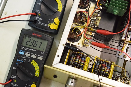 3年前に当工房で代品のコンデンサーを使ってレストアした物を購入されました。この3年間でカップリングコンデンサーが程よくエージングが効いてとても良い音です。