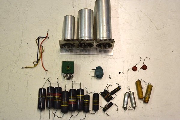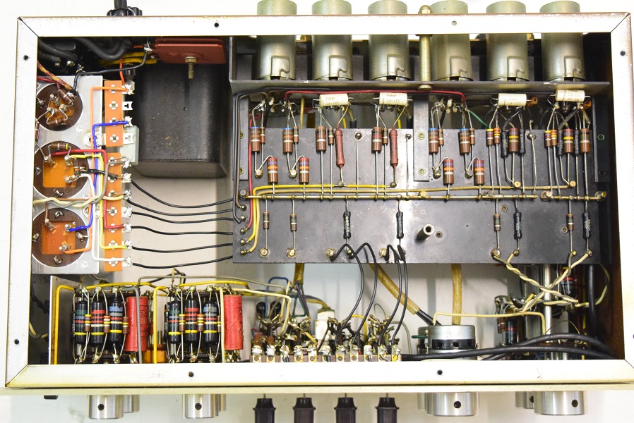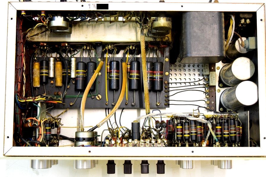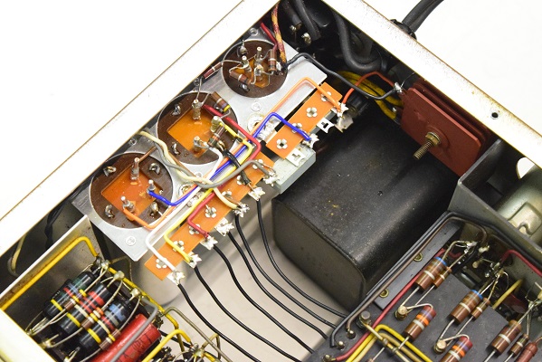 電源回路は電解ブロックコンデンサーを3本ともオリジナル仕様の新品に交換しました。高圧セレンも交換しました。バンブルビーは全て不良のため代品に交換しました。代品のコンデンサーはマランツ純正GoodALL-TRWの新品と音の良いフランス製です。フォノイコのカソードバイパスコンもマランツ純正SPRAGUEの新品に4本とも交換しました。ラインのセラミックコンデンサーもマランツ7純正SPRAGUEのNOS品に交換しました。