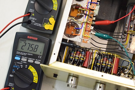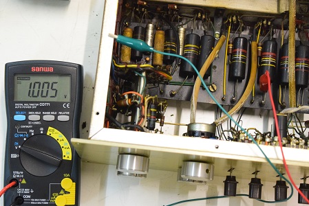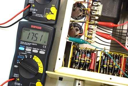 カップリングコンデンサーの漏れ電圧です。1V以上の漏れがあります。まだ高圧電圧が低いのでこの程度ですがレストア後正規の電圧になるとこの倍以上の漏れになると予想します。