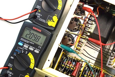 高圧セレン直後の電圧です。何と!209.8Vしか出ていなく規定より100V以上低下しています。