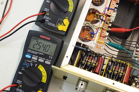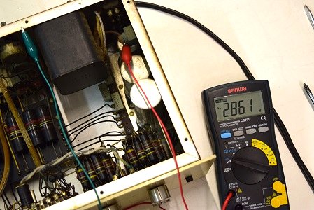 電源トランスの高圧出力です。AC286.1V出ています。良好です。