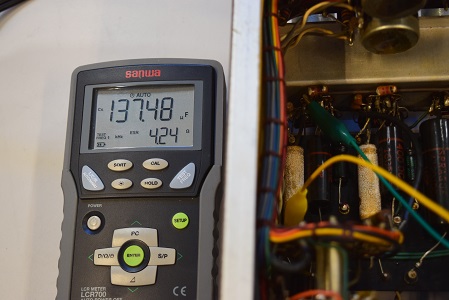 今では希少な高圧セレンも復刻の良品に交換しました。電解ブロックコンデンサーは高圧先頭φ25をオリジナル仕様に交換しました。