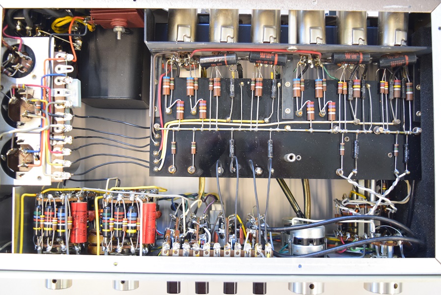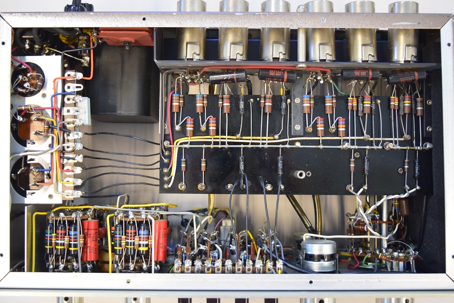 内部です。とても奇麗な状態です。 カップリングコンデンサーは定番のブラックビューティーに全て交換されています。