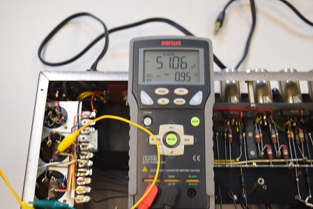 音を出す前の無信号時にギューンというノイズが気になります。フォノイコでは結構なノイズ音量です。恐らく電源の電解ブロックコンデンサーが検査では良好ですが、やはり劣化してこのノイズ源となっています。