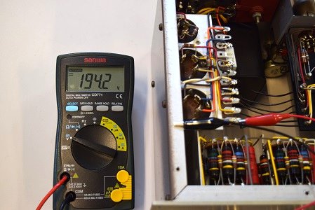 ヒーター電圧です。 16.78Vでかなり低い値です。ここは15Vを切るとTelefunkenの真空管は動作しません。通常は19.8Vです。