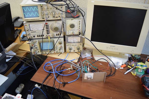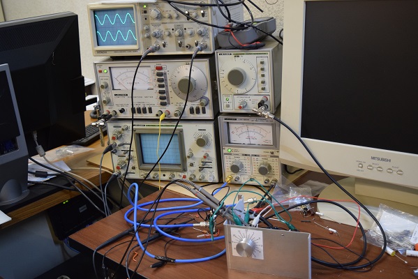 これに各端子に信号入力とレベル測定出力及び波形検査用プローブを取り付けています。