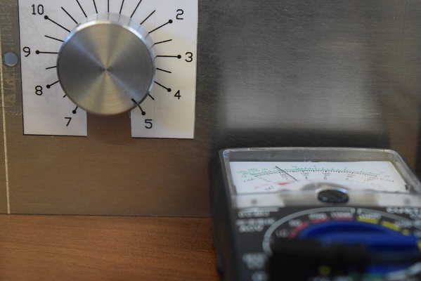 デジタルのマルチテスターでは不安定なのでアナログテスターで撮りました。