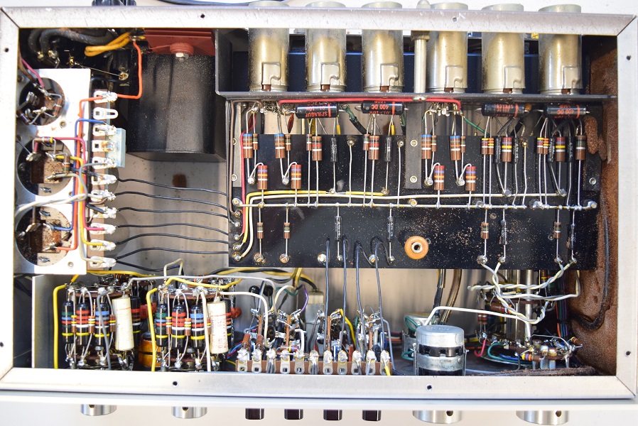 内部です。コンデンサー類は交換されているところがありますが大きな改造はされていません。
