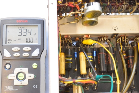 程度の良いMarantz7オリジナルです。 特に問題なく聴けているが、よくあるブラックビューティーが使われているので、お勧めのバンブルビーの音に近いコンデンサへ換装を希望されました。