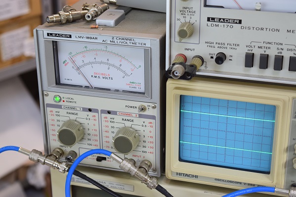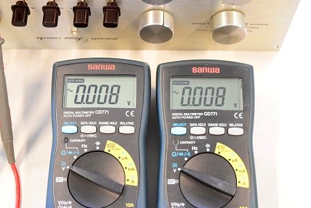 残留ノイズです。 ミリバルのメーター読みで左は0.8mV,右は0.4mVで良い値です。