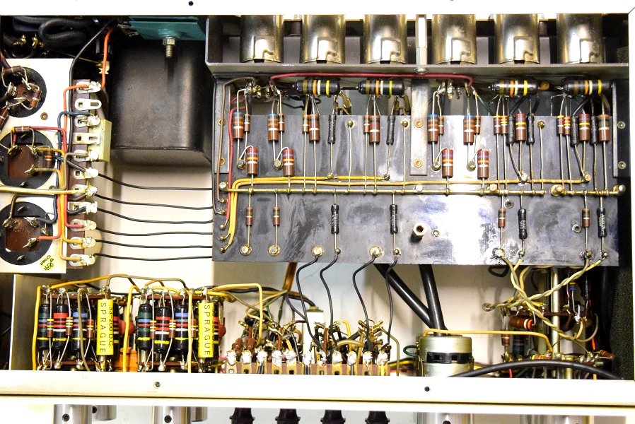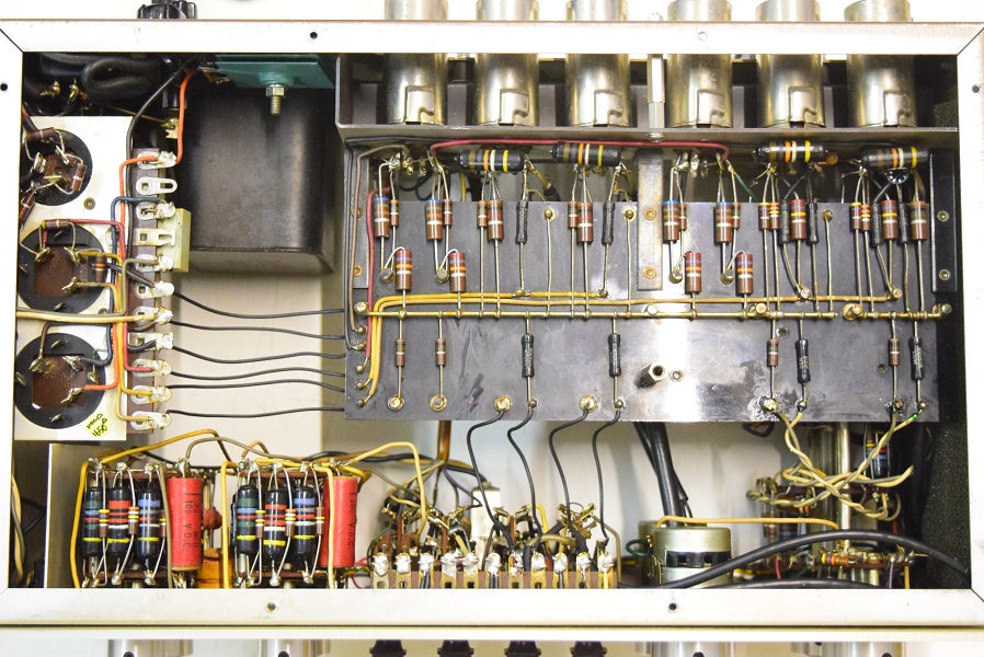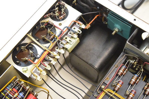 フォノイコ先頭以外のカップリングはバンブルビーです。電源のφ25電解ブロックコンデンサーは純正SPRAGUEに交換されています。高圧セレンも交換されています。フォノイコのカソードバイパスコンの2段目も交換されています。