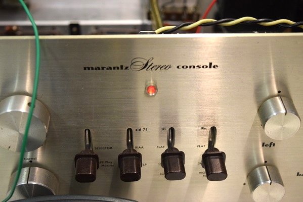 Marantz7オリジナル 16000番台です。 こちらに到着した時のパネルの状態です。各ツマミの位置が変です。左チャンネルだけで聴かれているようです。