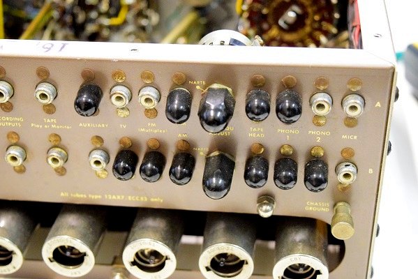 使わないところに目隠しキャップが嵌められています。恐らくこの方は左チャンネルのみ使用されて右チャンネルは使われていないと予想します。この為フロントパネルのツマミの位置も頷けます。