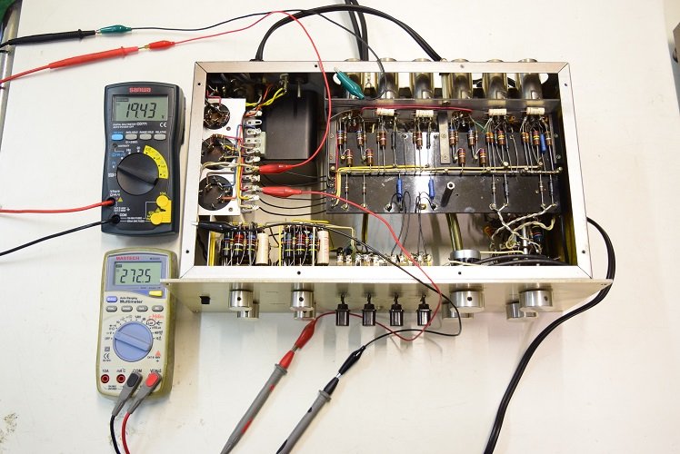 案の定、最終のV6が検討値を示しています。CDの音も元気が無くいまいちだったのでラインアンプのどれかを疑っていました。Telefunken ECC83<>有が6本で印字もしっかりしているものですがやはり怪しいものも混ざっていました。