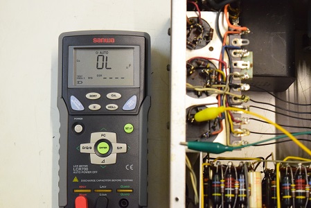 左側の2段目です。容量まあまあですがESRが非常に高い状態です。不良です。