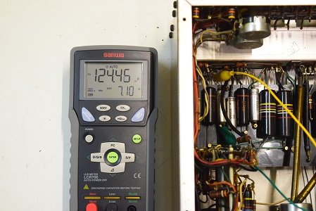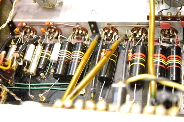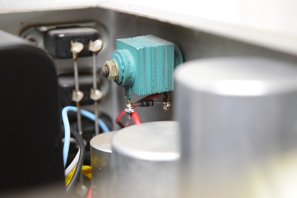 裏面です。こちらもカップリングコンデンサーと低圧セレンをブリッジダイオードに交換されています。電解ブロックコンデンサーはオリジナルのままです。