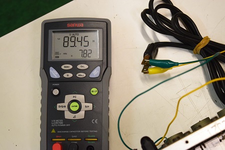 電源トランス1次側のインダクタンスを測ります。89Hとかなり高い値です。