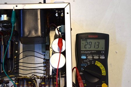 心配していた電源トランスの出力です。AC291.3Vを示します。