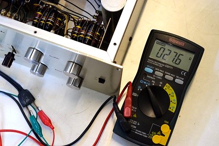 念の為、電源トランスの1次巻線抵抗を測ります。