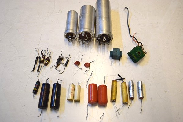 交換部品です。電源部品に加え今回はたくさんの抵抗を交換しました。