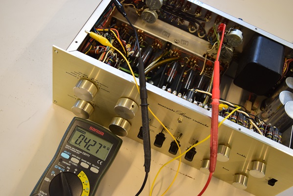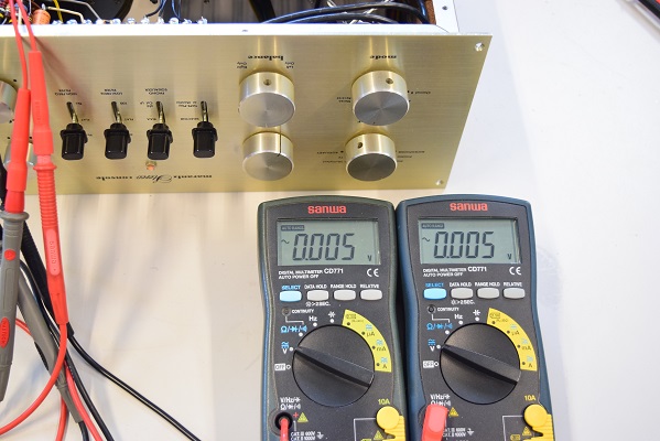 残留ノイズです。 ミリバルのメーター読みで左右とも 0.1mV位で良好です。