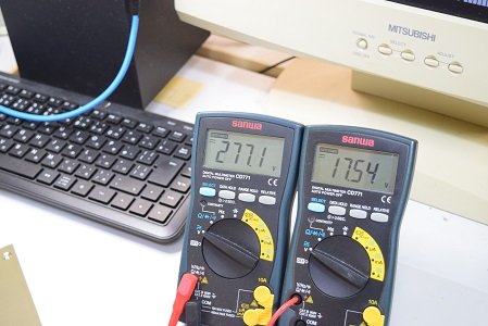 こちらの左テスターは高圧B3です。 237.3Vで良い値です。
