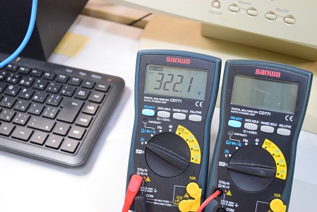 こちらの左テスターは高圧セレン直後です。 322.1Vで良い値です。
