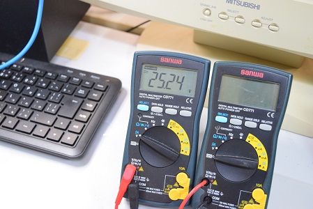 こちらの左テスターは低圧セレン直後です。 25.24Vでまあまあの値です。